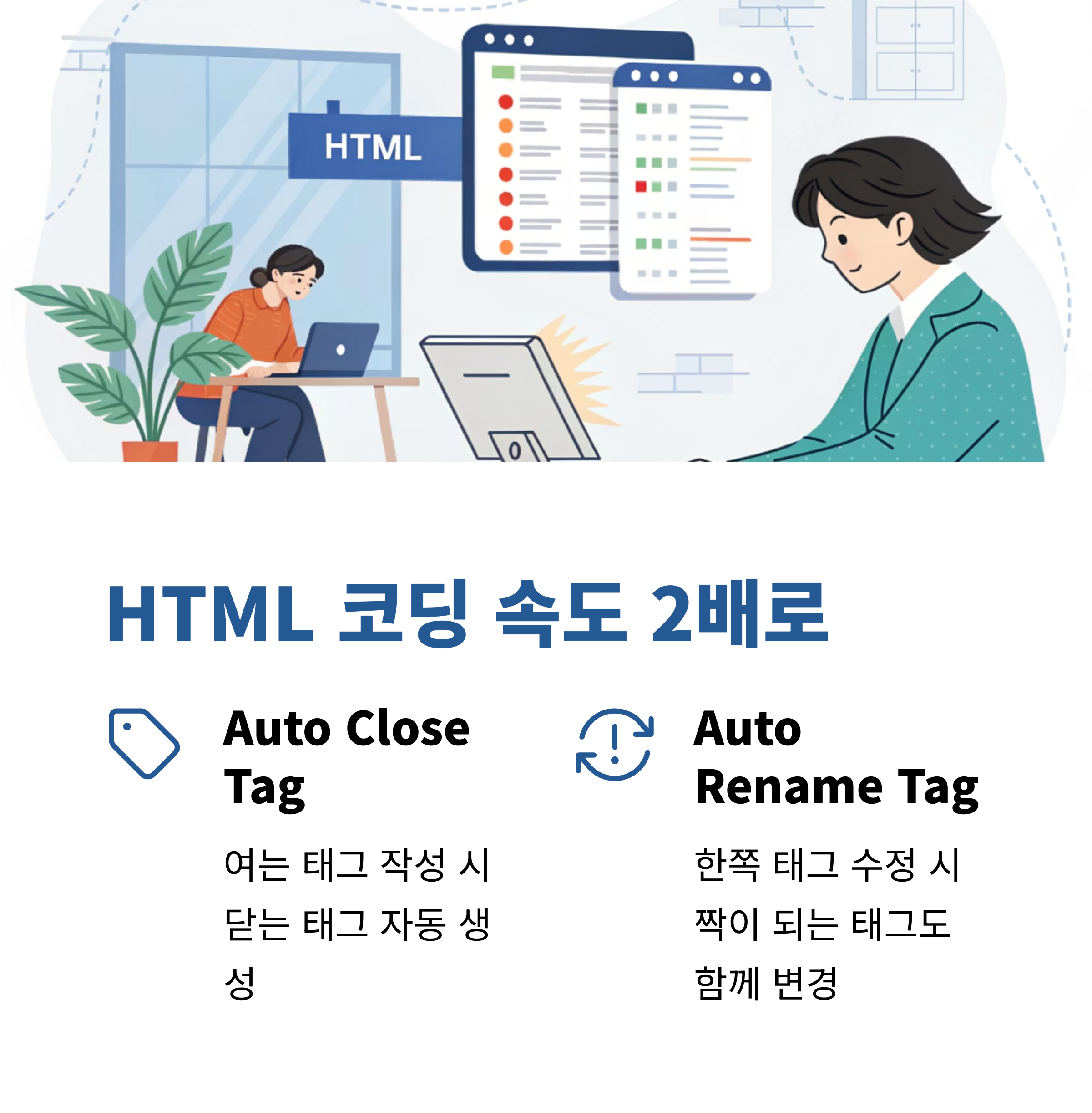 태그 자동 닫기와 이름 변경 동기화는 시간을 절약해줍니다.