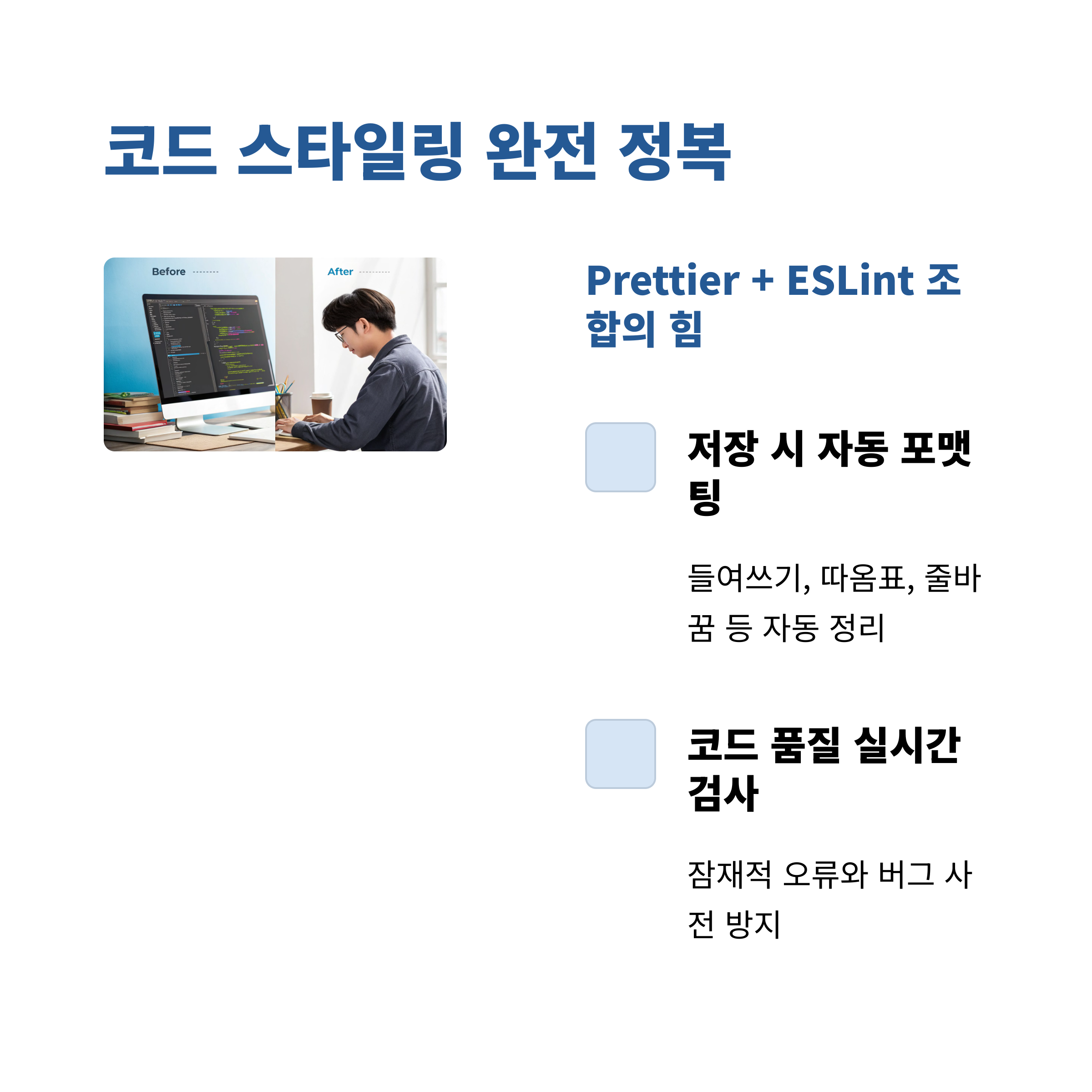 반면 ESLint는 문법 오류와 잠재적인 버그를 미리 잡아줍니다.
