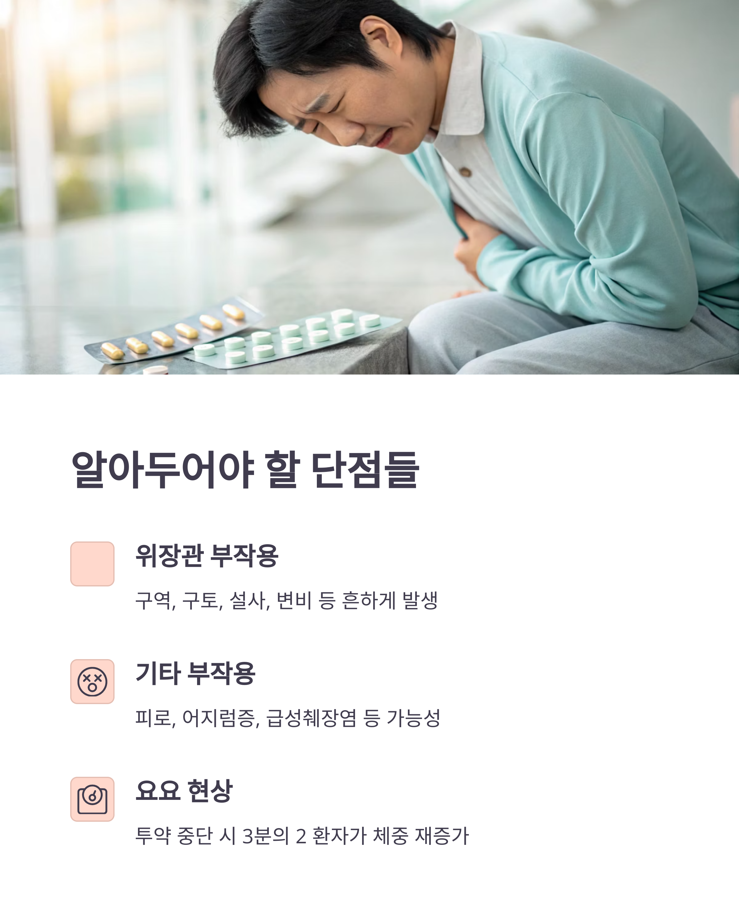- 마지막으로, 약물 중단 후 요요현상 역시 발생할 수 있습니다.