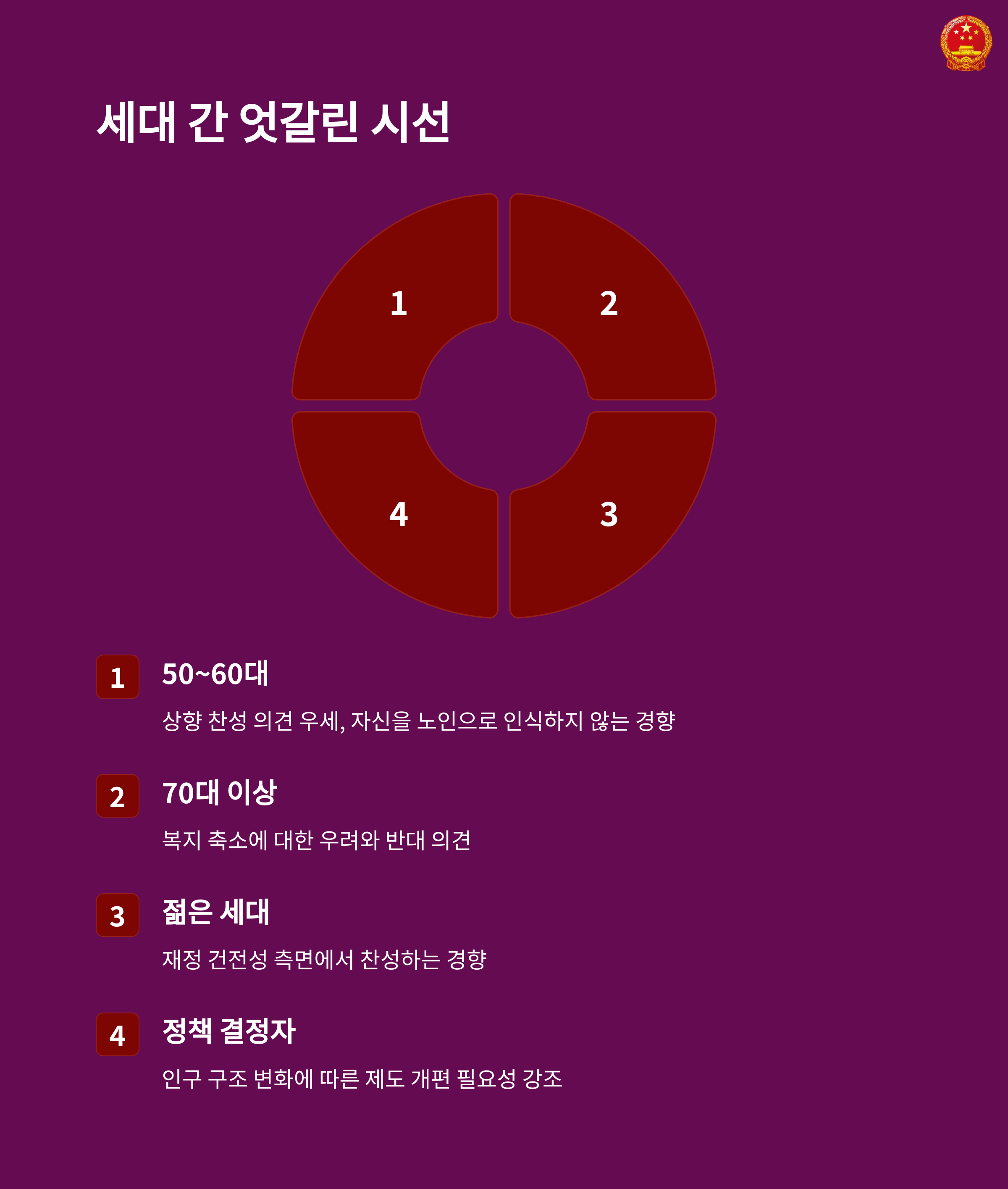 즉, 연령 기준 상향에는 공감하지만, 현행 혜택이 줄어드는 것은 원하지 않는다는 입장입니다.