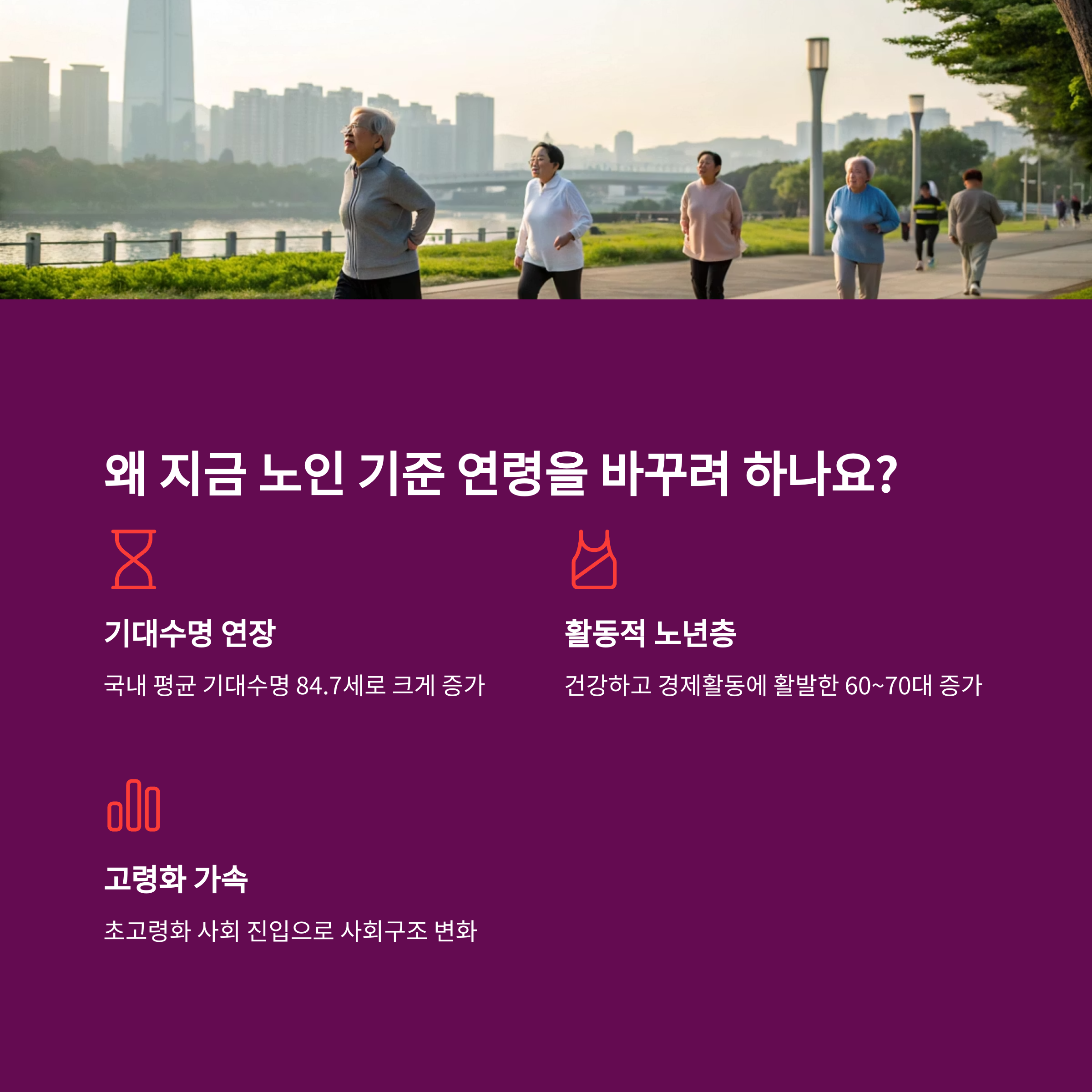 노인 연령이 올라가면, 단순히 숫자만 바뀌는 것이 아닙니다.