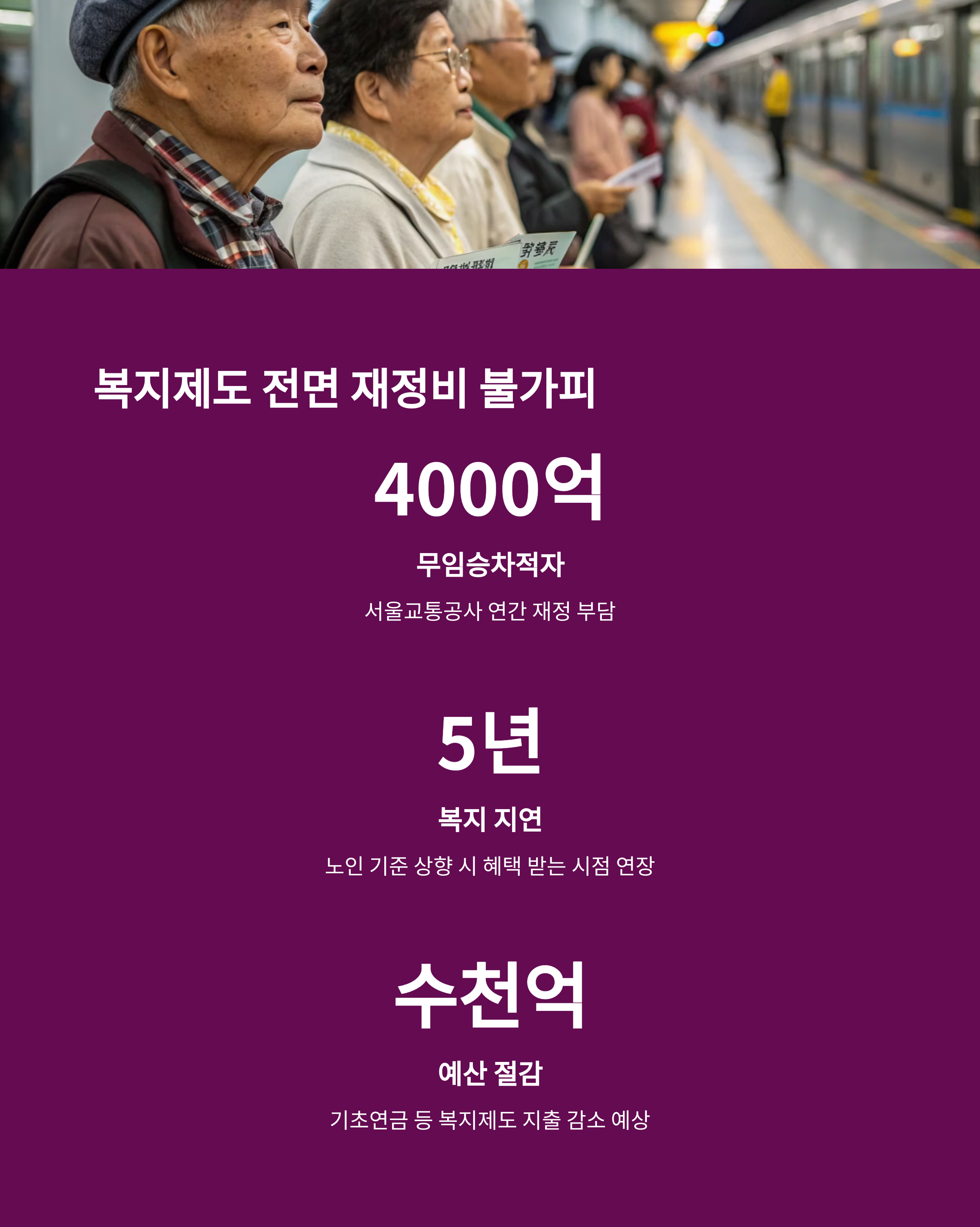 지하철 무임승차, 기초연금, 건강보험 혜택 등 다양한 복지제도의 수혜 기준이 연쇄적으로 변경됩니다.