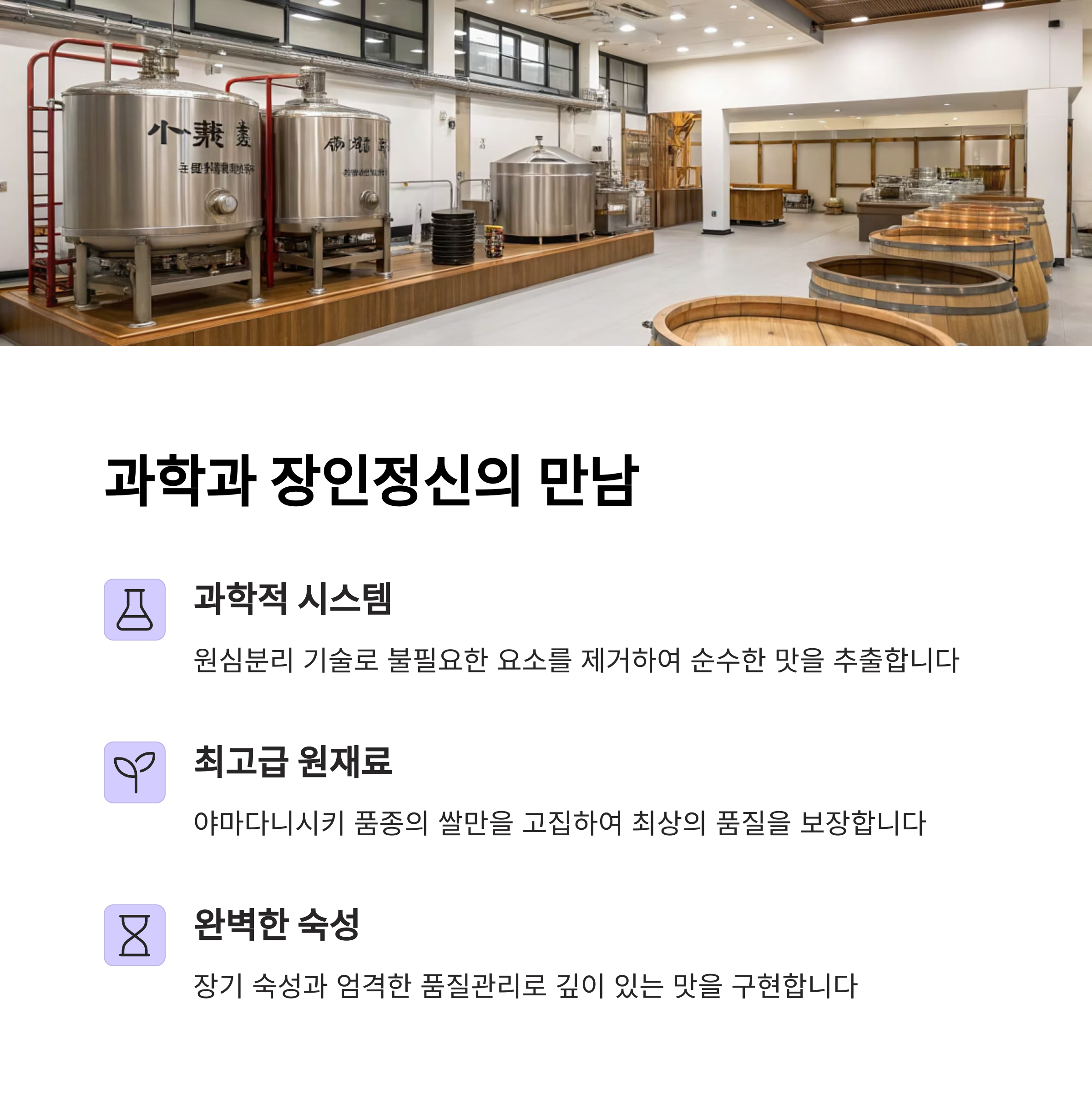 제조 방식의 정수 - 첨단 기술로 빚어낸 전통 사케