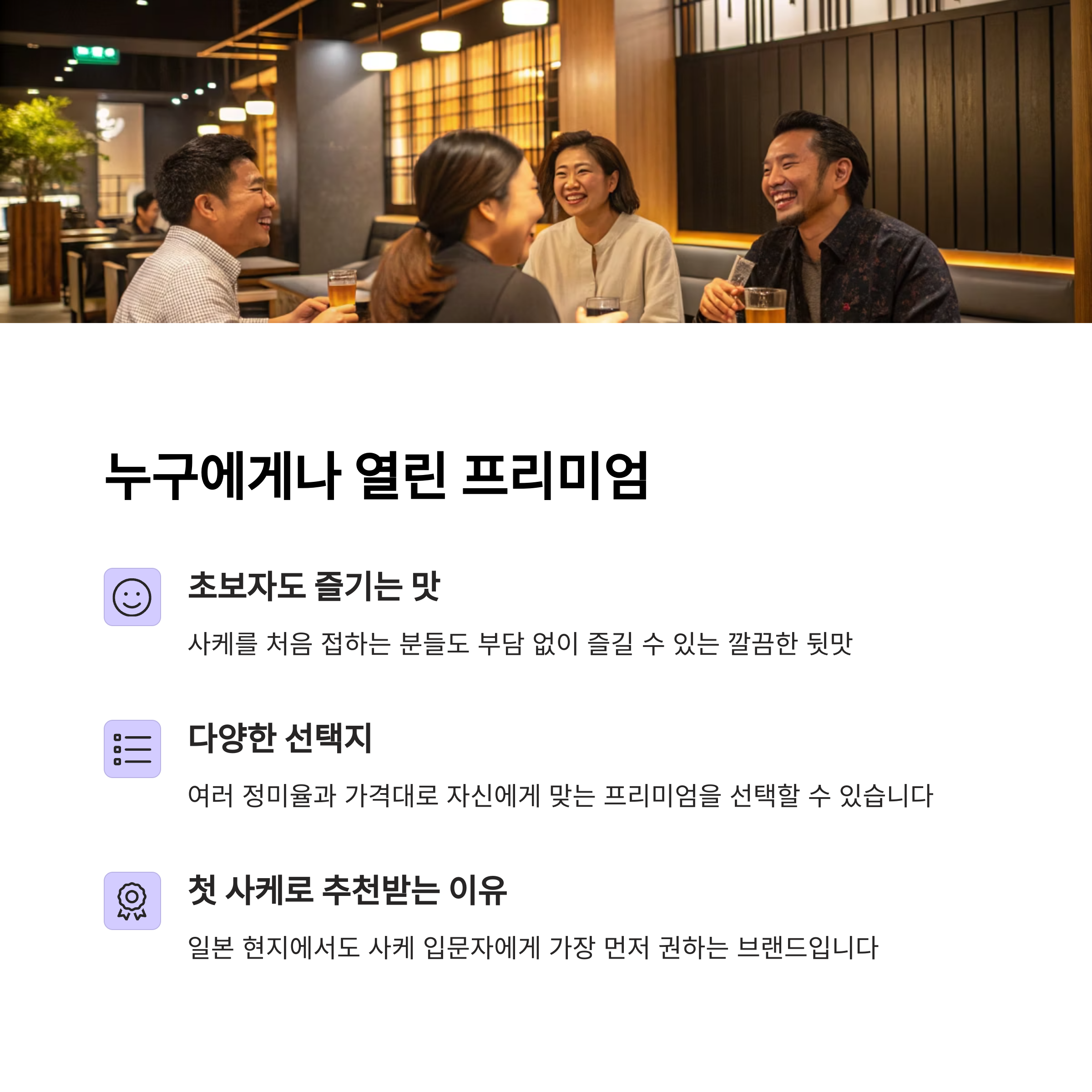 누구나 즐기는 프리미엄 - 입문자도 부담 없는 고급 사케