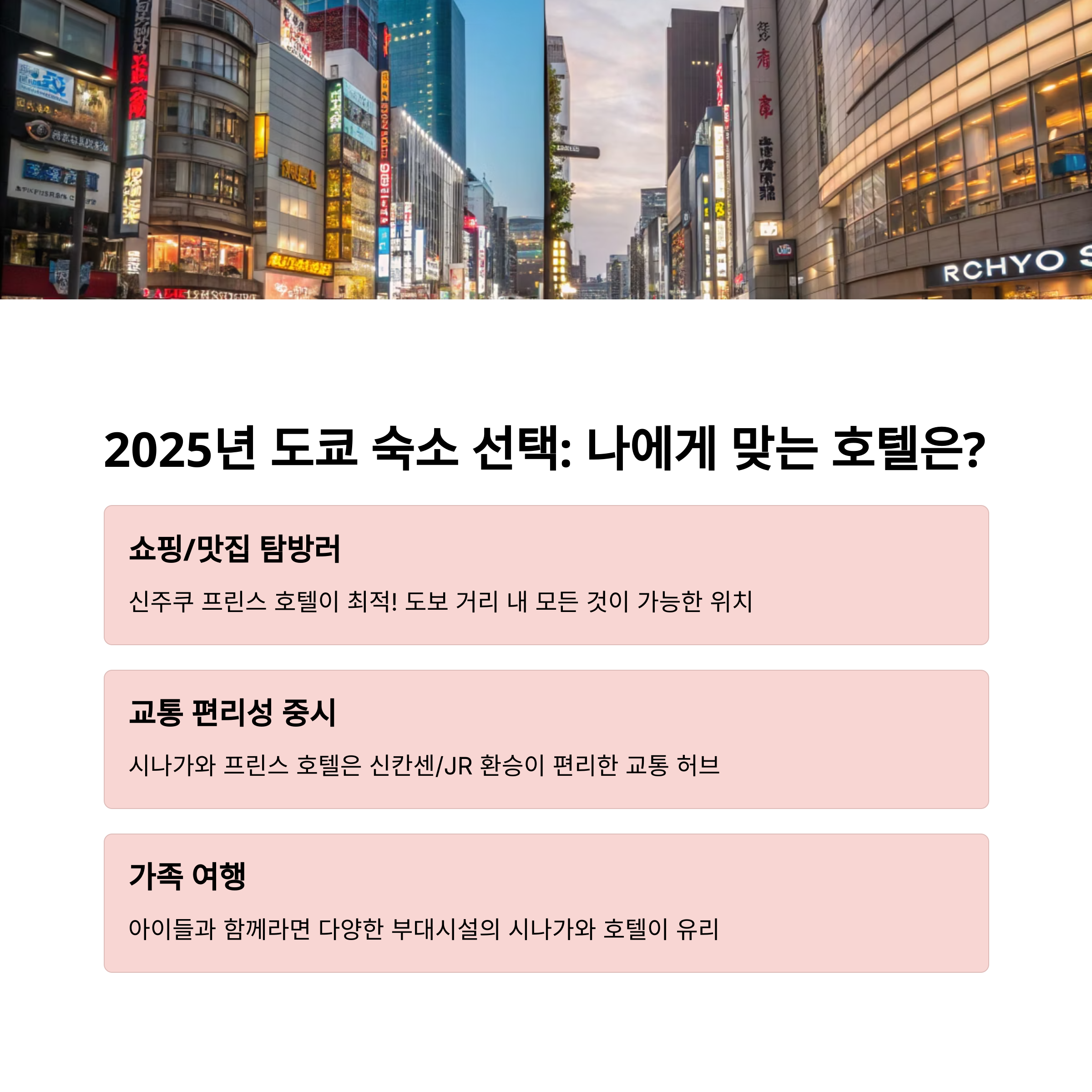 2025년 도쿄 숙소 선택 결론 – 나에게 맞는 호텔은?