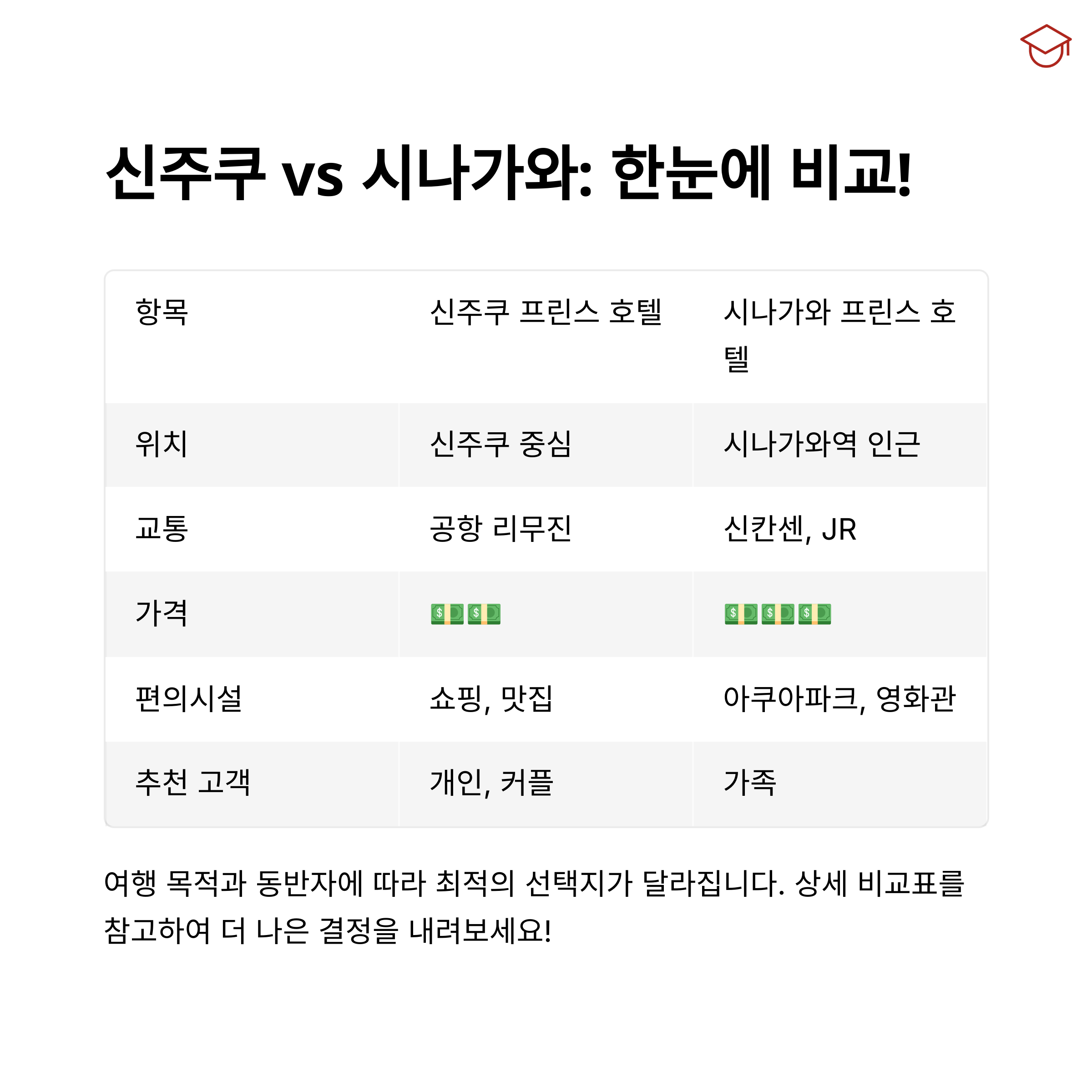 "표로 비교하면 두 호텔의 장단점이 훨씬 명확하게 보입니다"