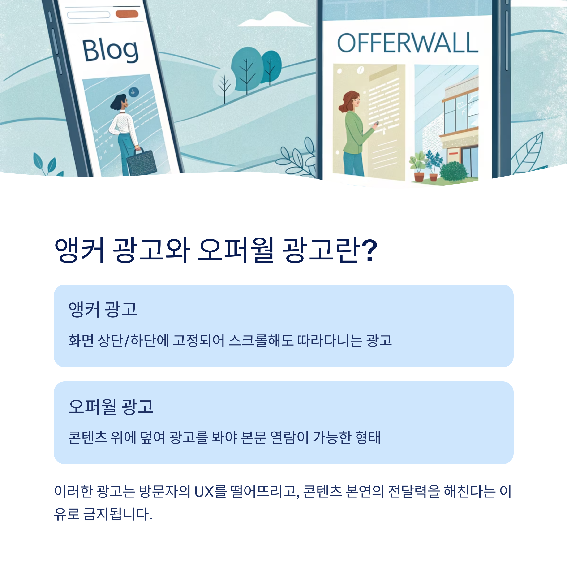 앵커/오퍼월 광고 금지 | UX 저해로 전면 금지, 위반 시 제재 | 2025년 6월 1일 |