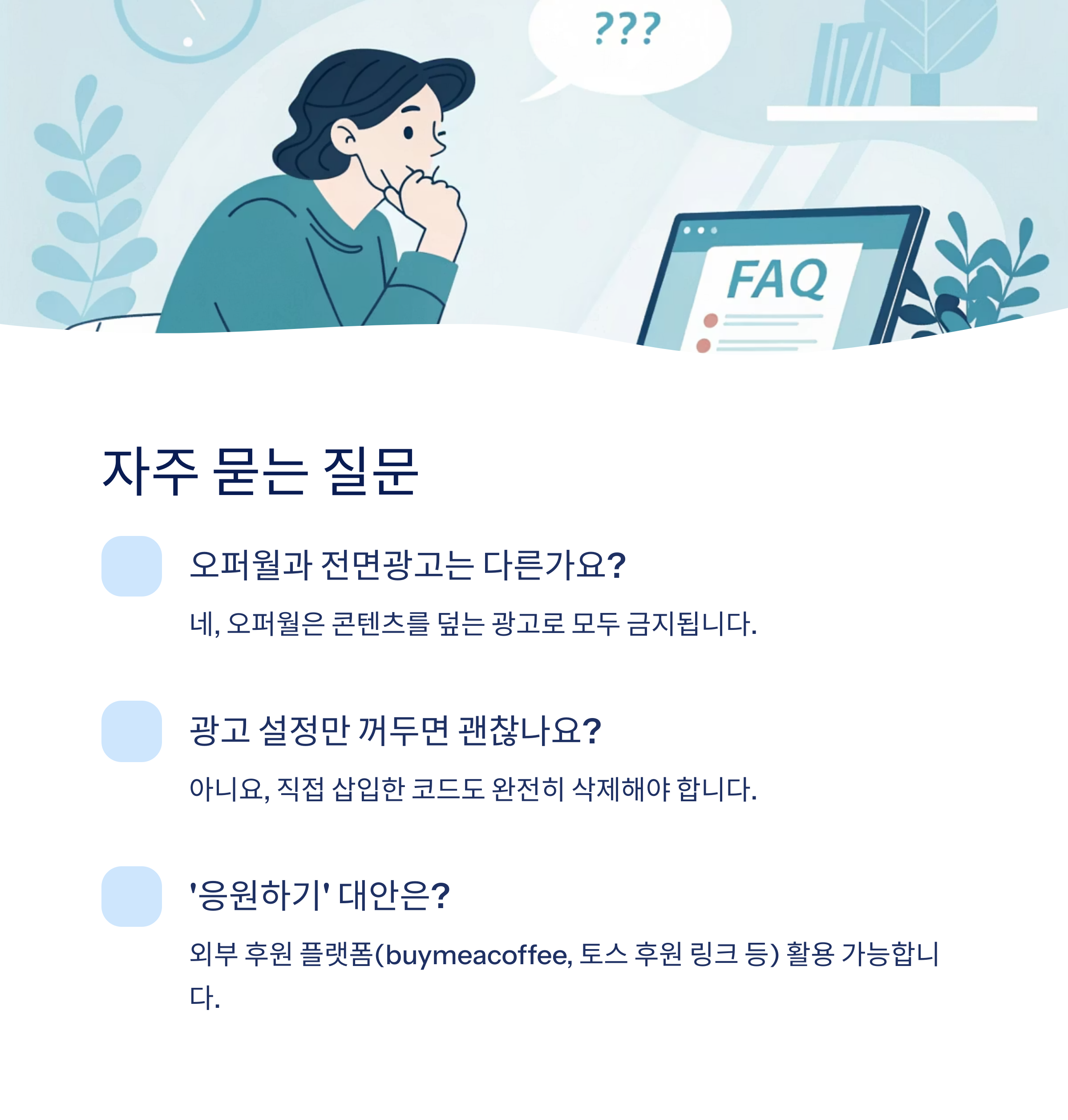티스토리에서는 이런 형태를 모두 금지합니다. - Q. 기존 광고 설정만 꺼두면 괜찮은가요?