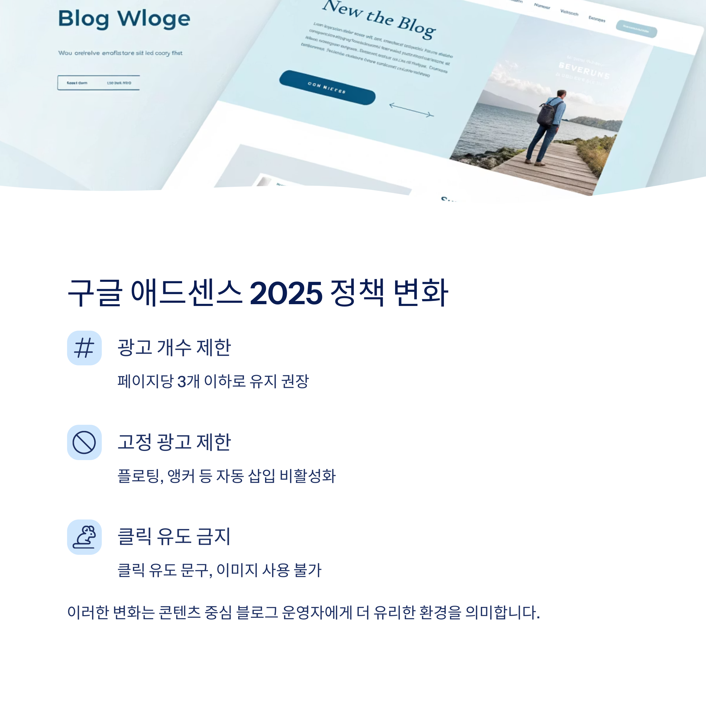 구글 애드센스 가이드 | 페이지당 광고 3개 이하, 플로팅 광고 제한 | 2025년 상반기부터 |
