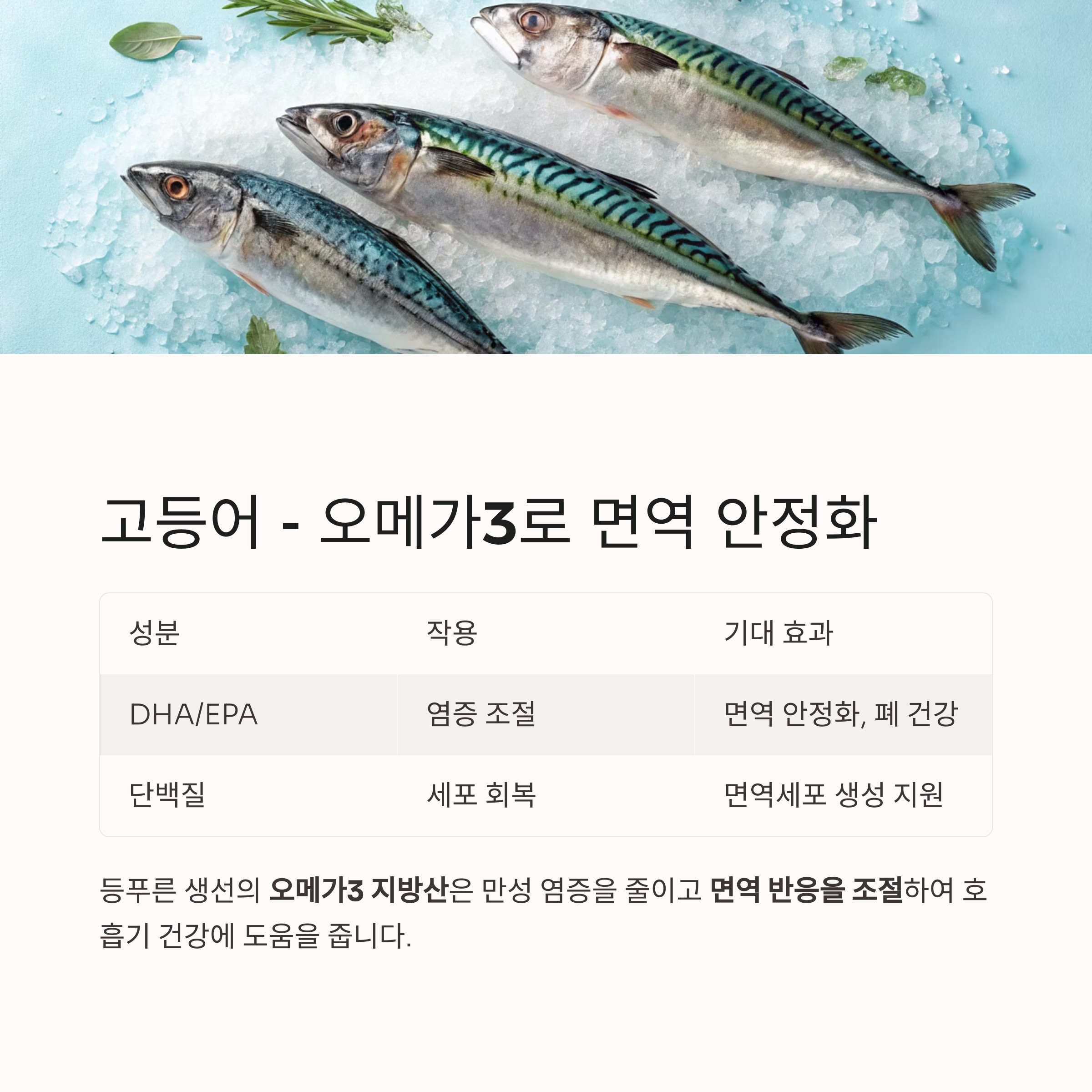 DHA/EPA | 염증 조절 | 면역 안정화, 폐 건강 |