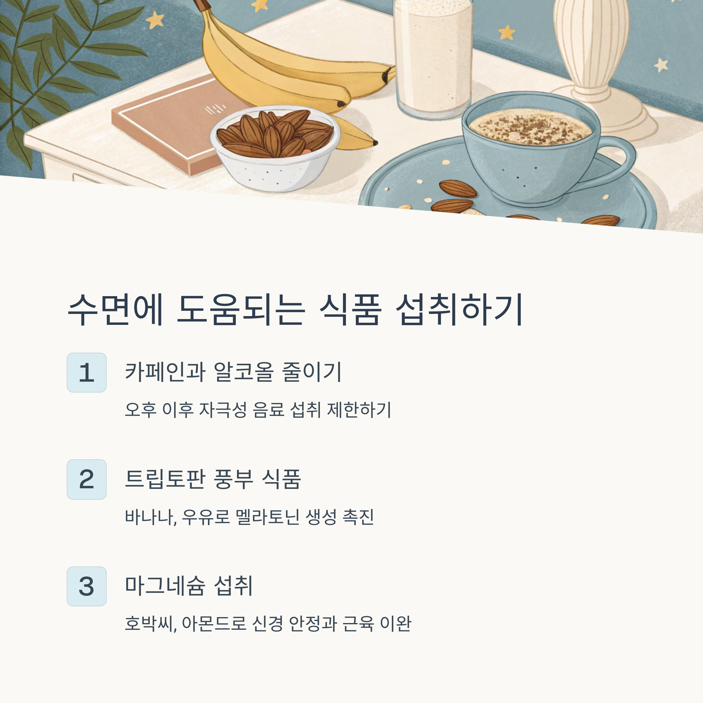 음식 조절: 카페인 줄이고 마그네슘·트립토판 강화