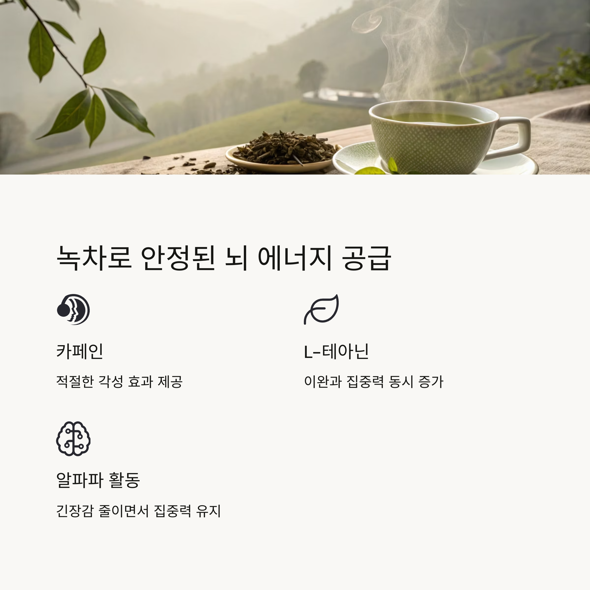 녹차에는 카페인과 L-테아닌이 조화롭게 들어 있어,