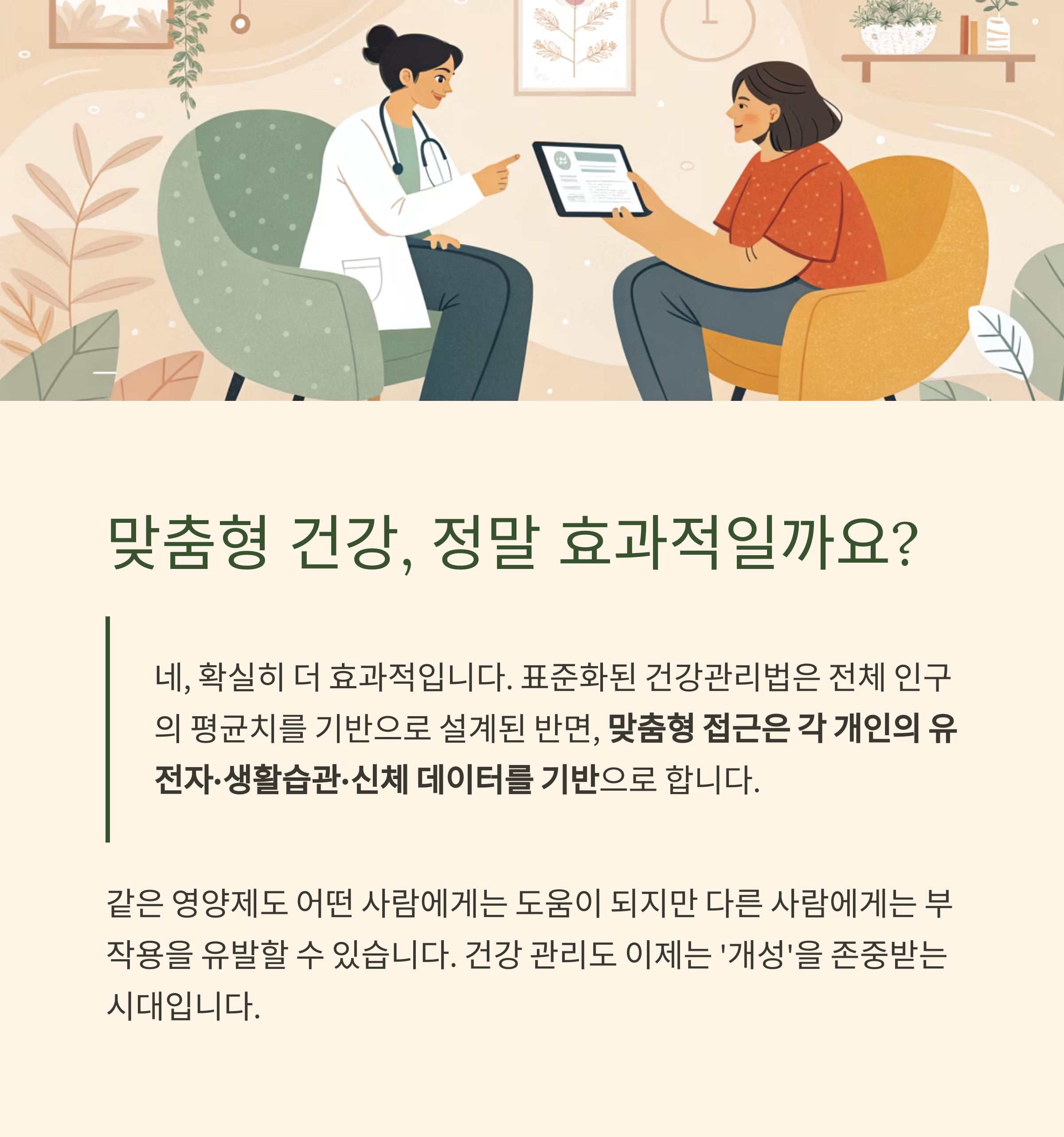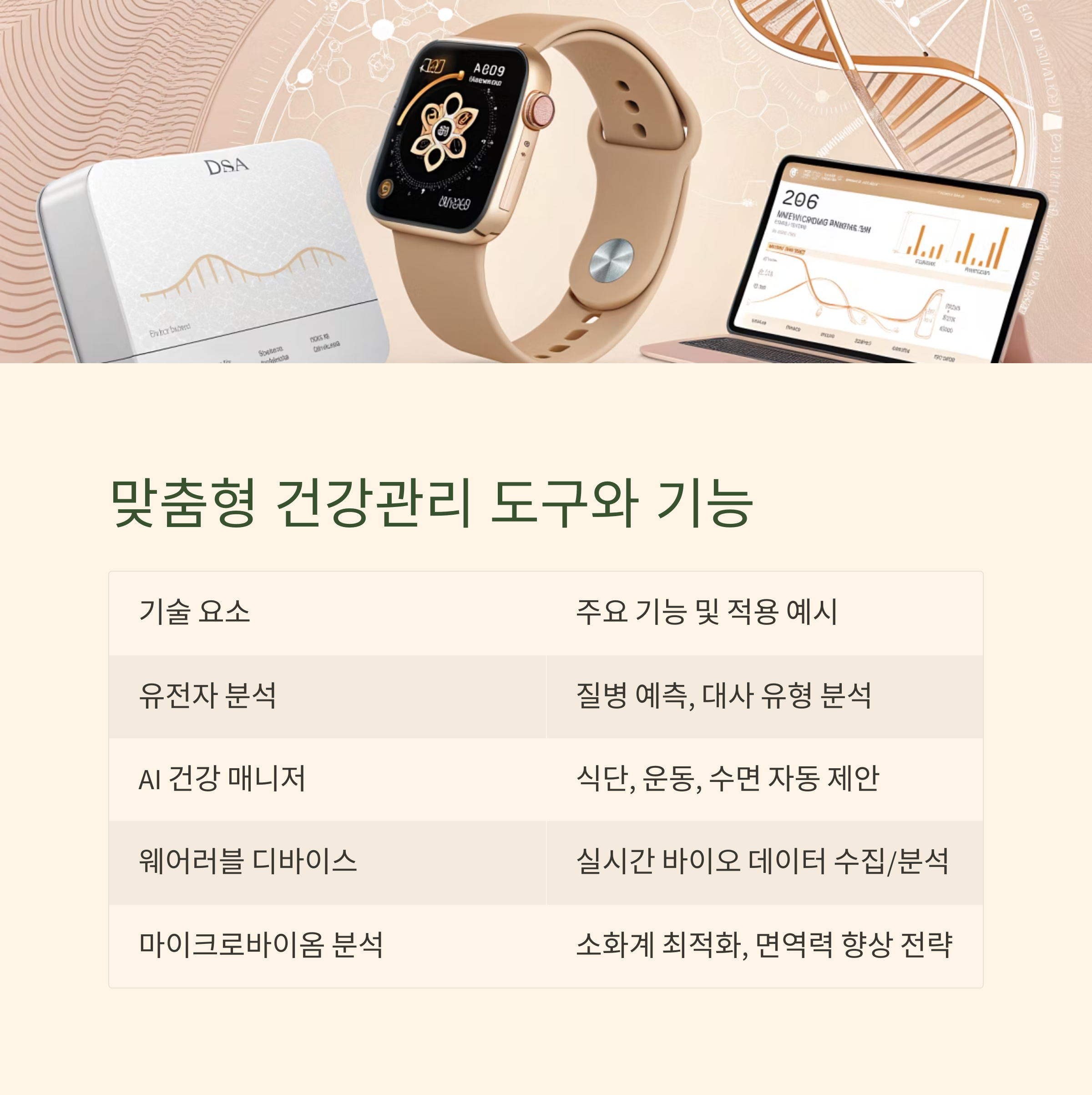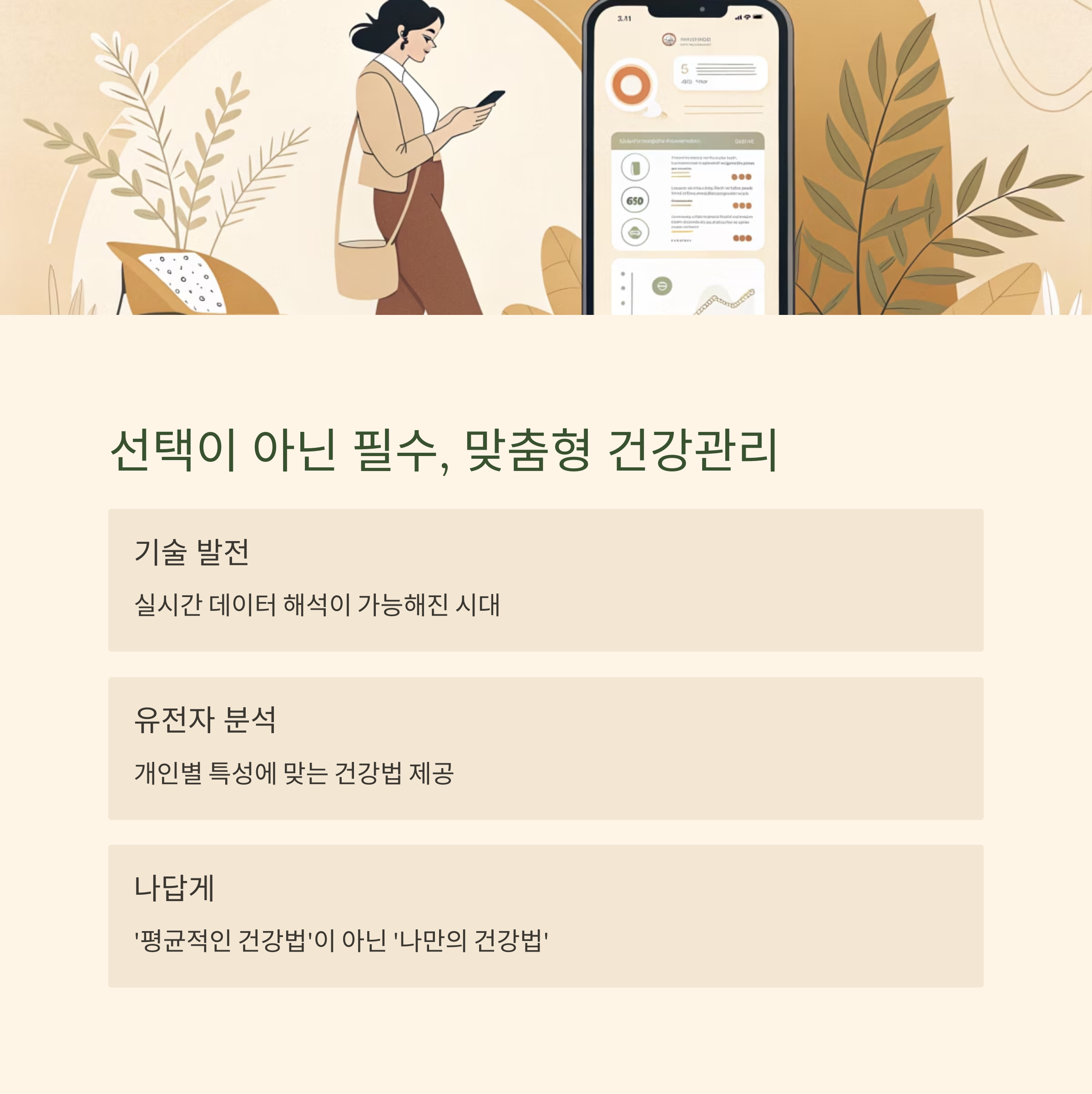 맞춤형 접근은 각 개인의 유전자·생활습관·신체 데이터를 기반으로 합니다.