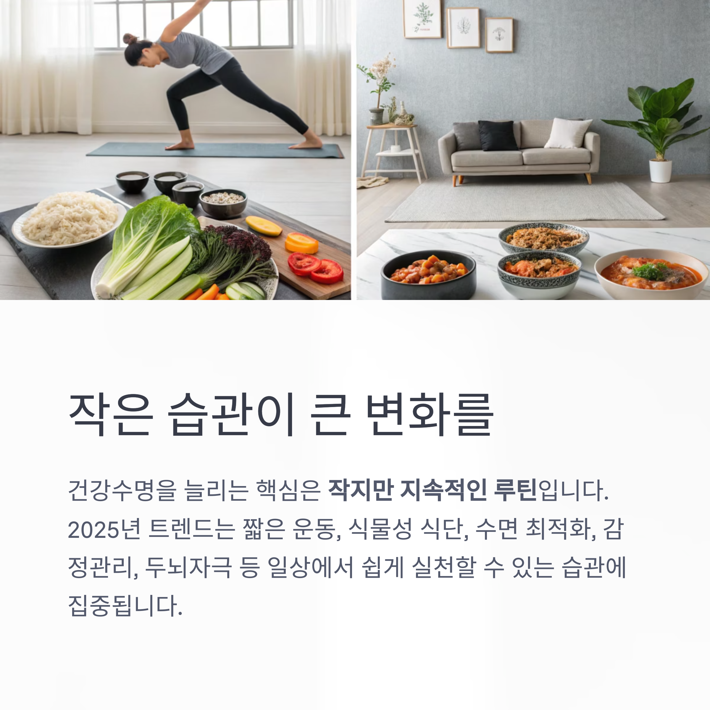 건강수명을 늘리는 핵심은 거창한 변화보다 작지만 지속적인 루틴입니다.