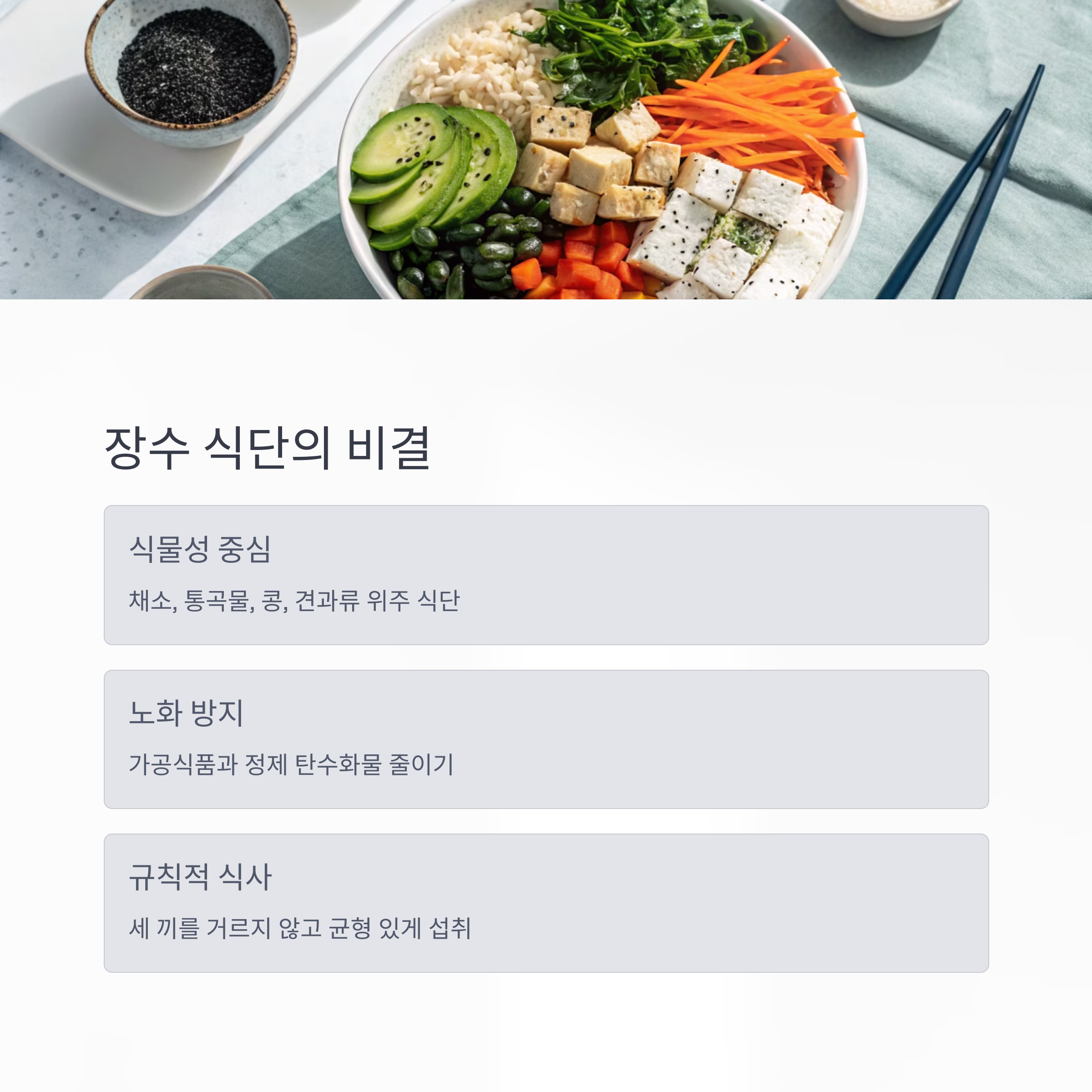 장수 식단의 비결, 식물성 중심 균형식